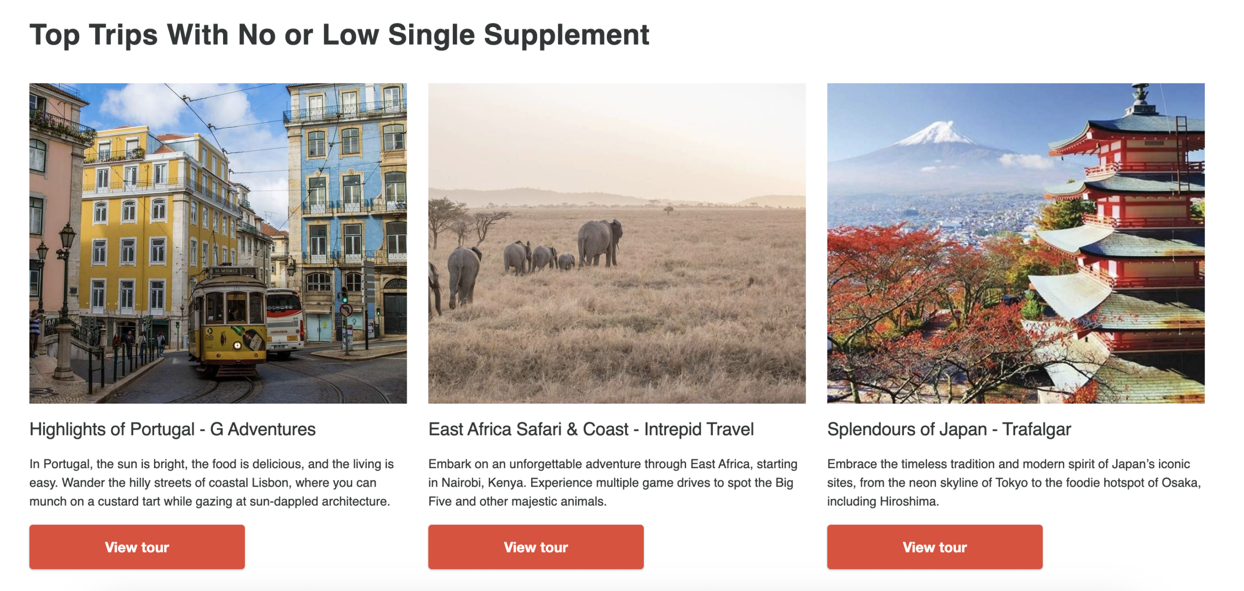 3. Search and find for solo trips with no or low single supplement quickly